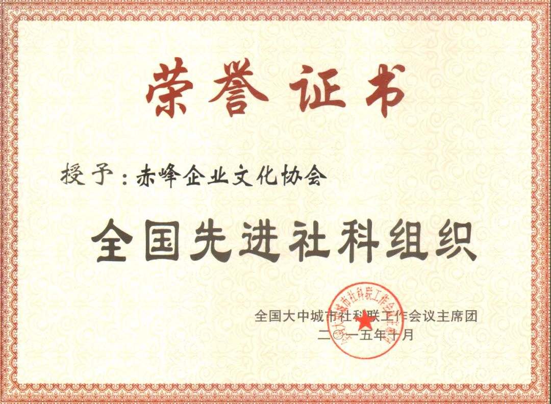赤峰企業(yè)文化協(xié)會榮獲內(nèi)蒙古自治區(qū)民政廳“全區(qū)先進社會組織”榮譽稱號